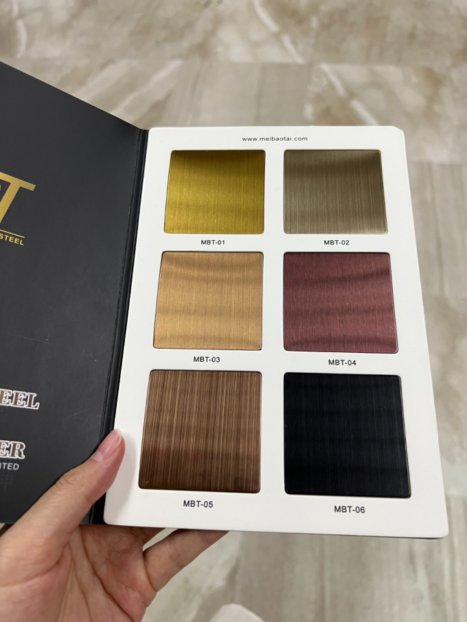 Bạn đang tìm kiếm vật liệu tinh tế, bền bỉ và đầy màu sắc để nâng tầm dự án tiếp theo của mình? Là một nhà máy sản xuất hàng đầu chuyên về thép không gỉ màu cao cấp, chúng tôi cung cấp bảng màu và kết cấu phong phú, được thiết kế để đáp ứng các tiêu chuẩn thẩm mỹ cao nhất.