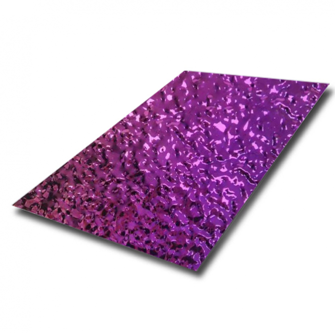 Nâng cao các dự án kiến trúc của bạn với tấm thép không gỉ màu tím của chúng tôi.Vật liệu trang trí sáng tạo này kết hợp độ bền vượt thời gian của thép không gỉ với tính thẩm mỹ tiên tiến. Bề mặt trải qua một quá trình đánh bóng gương 8K chính xác cao sau đó là một phương pháp xử lý phấn chân không PVD (Physical Vapor Deposition) tinh vi để đạt được một màu tím sống động, sâu.Các đặc trưng "làn sóng nước" hoặc kết cấu búa được đúc trên kim loại, tạo ra một hiệu ứng 3D năng động bắt chước chuyển động nhẹ nhàng của nước dưới ánh sáng.