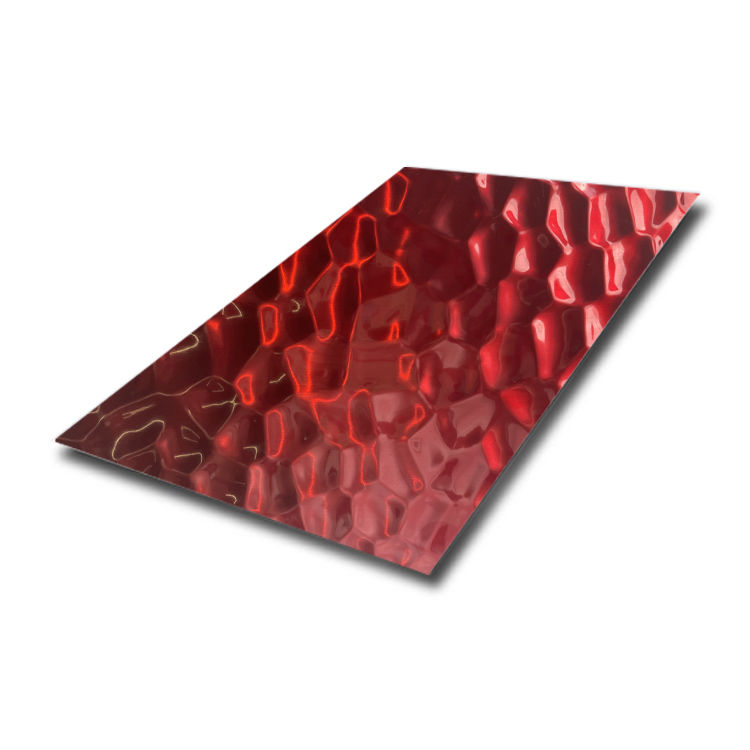 Tấm inox dập có độ bền cao, hiệu ứng trang trí mạnh mẽ, đẹp mắt, chất lượng cao, dễ lau chùi, không cần bảo trì, chịu lực, chịu áp lực, chống trầy xước và không để lại dấu vân tay. Và hiệu ứng ba chiều được tạo ra bởi sự không bằng phẳng của gợn sóng nước là vô song, hiệu ứng hình ảnh rõ ràng và các quy định rất rõ ràng. Sau khi mài bề mặt gương của tấm inox, ấn gợn sóng nước, các vị trí lõm và lồi sẽ tạo ra hiệu ứng sáng, vị trí lõm sẽ giữ màu mờ của inox và vị trí lồi sẽ có hiệu ứng gương phản chiếu. Nó có thể được mạ theo yêu cầu của khách hàng.